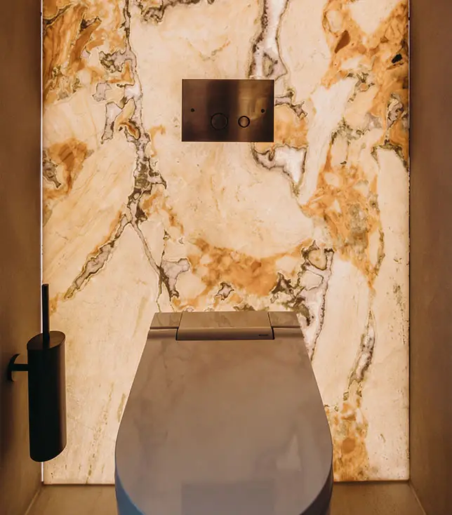 Onyx is een kleurrijke steen met een luxe en exclusieve uitstraling. Het grootste kenmerk van onyx is dat het lichtdoorlatend is. Onyx wordt gevormd in grotten door de trage koude stroming van koolzuurhoudend bronwater. Er kunnen bijzondere toepassingen gerealiseerd worden door de lichtdoorlatende eigenschap van het materiaal. Wanneer het erachter of eronder wordt verlicht, creëert dit een zachte gloed in het gesteente die de kleur- en patroonvariaties nog meer benadrukt. Daardoor krijgt het steen een extra luxe dimensie en ontstaat er een warme en rijke gloed. Onyx heeft vaak een breed scala aan geel- oranje tinten vanwege de aanwezigheid van ijzerafzettingen. Andere veel voorkomende kleuren zijn wit, bruin, groen en paars.